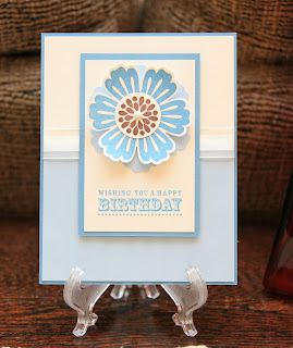 The last card I'm going to share is another simple birthday card. I pulled out a color I haven't used in years -- Bashful Blue. It's funny how you gravitate to the new colors and forget about the old standards. I like how it turned out -- what do you think?